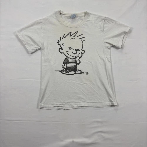 Vintage Calvin and Hobbes Graphic T-Shirt 90s Style Small White Single Stitch