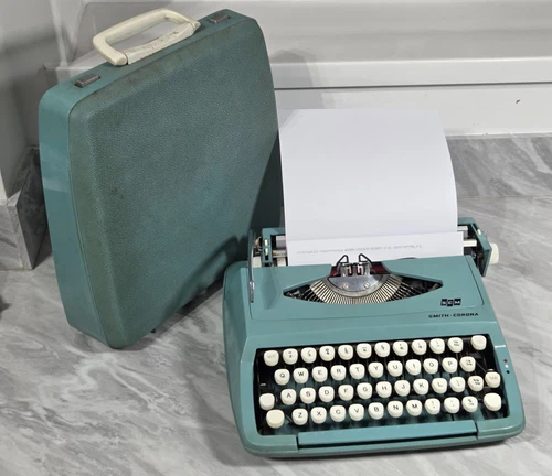 Vintage Smith Corona Portable Typewriter & Hard Case Aqua Blue