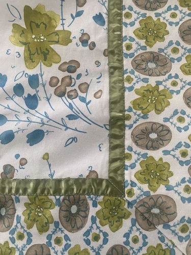 Sam MacKenzie ~ Tablecloth 70X90 ~Button Flower Avocado Green & Aqua 1970s Retro