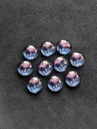 10 Floral Cabochons Purple Pink Blue Flatback Glass Craft Pieces