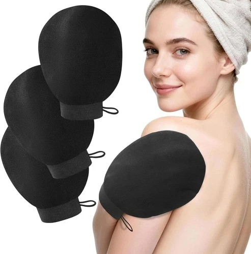 Yeqqzq Exfoliating Gloves 4 Pack, Body Scrub Mitts for Smooth Skin, Black