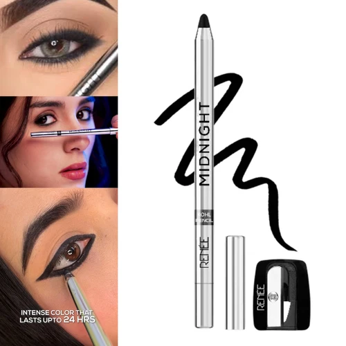 RENEE Midnight Kohl Pencil - Smudgeproof And Waterproof Kajal - 24 Hrs Long Stay