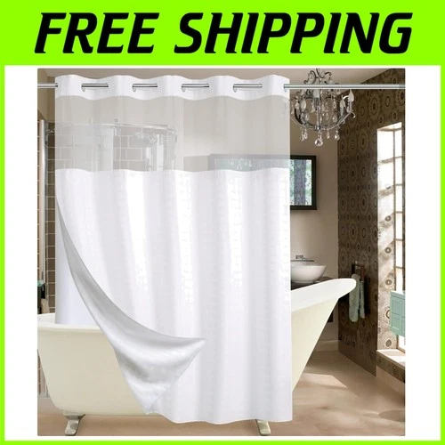 White Shower Curtain with See Through Top Window, Waterproof