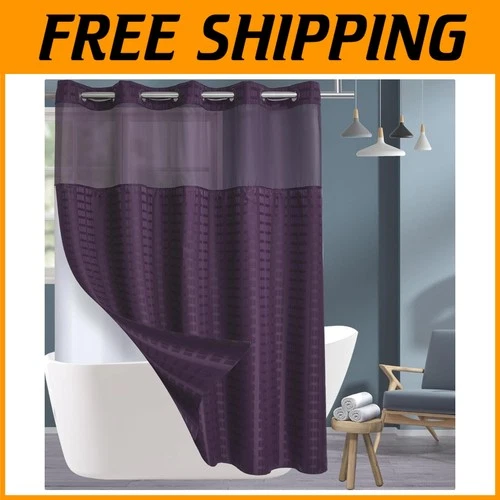 No Hook Shower Curtain with Liner Set - Purple Luxury Design