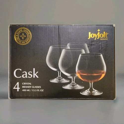 4 PC Cask Brandy Whiskey Crystal Glasses by JoyJolt, Cognac 13.5 oz Clear 5.5"T
