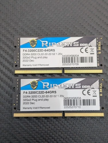 G.SKILL Ripjaws 64GB (2x32GB) DDR4 3200Mhz SO-DIMM Laptop RAM F4-3200C22D-64GRS