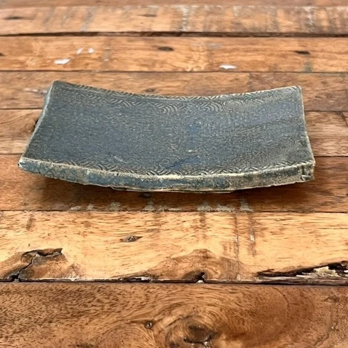 Vintage Stoneware Footed Decorative Trinket Soap Dish Engraved Wave Pattern