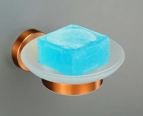 Brushed Rose Gold SUS Soap Dish Holder Wall Mounted Bathroom Round Glass Dish
