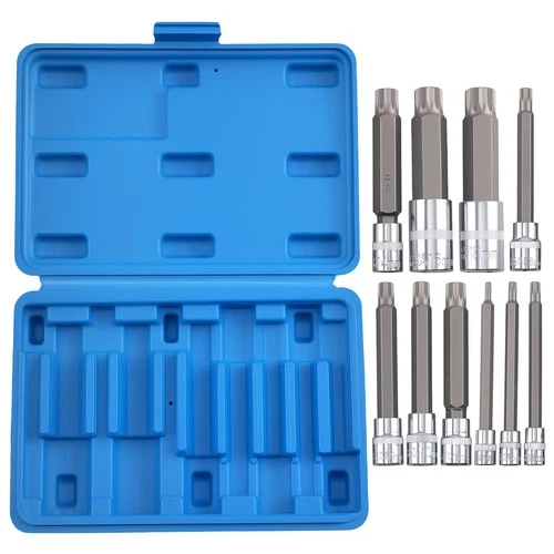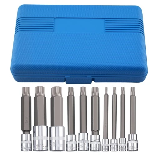 10 Piece Metric Spline Socket Bit Set S2 Alloy Chrome Finish 4 Inch Case