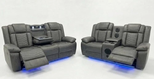 Michigan Music 3+2 Black or Grey Electric Recliner Sofa Set. USB, LED, Bluetooth