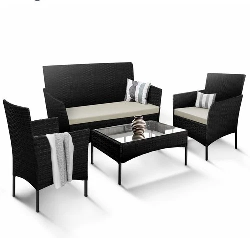 4-Piece Rattan Garden Furniture Set Outdoor Lounger Sofa, Stackable Chairs Table