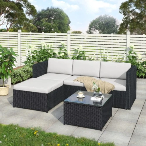 5 Seater Garden Furniture Corner Sofa with Coffee Table Outdoor Lounge Set Beige