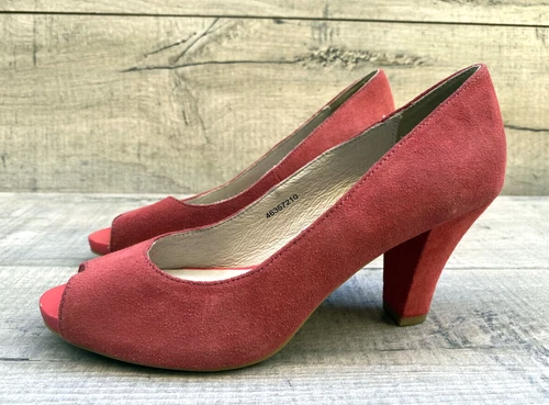 Clarks BEA Soft Coral Suede Leather Mid Heel Court Shoes Size 4D 37 Chic