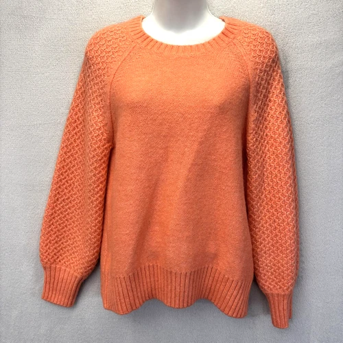 J. CREW Chunky Knit Pullover Sweater Womens Small Coral Orange Alpaca Soft Cable