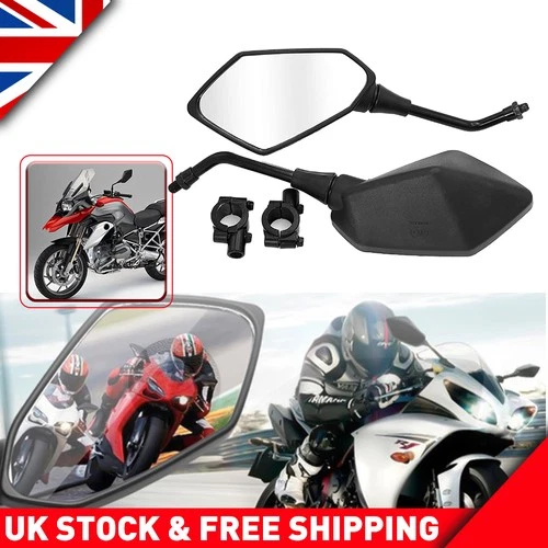 Universal 10mm 7/8" Motorcycle Side Mirror For Suzuki Honda Bike ATV Rearview UK