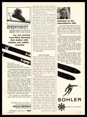 1965 Contact Skimatic West German Ski Bindings Herb Sohler Skis Vintage Print Ad