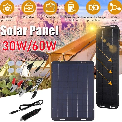 30W/60W Solar Panel Trickle Charger Battery Maintainer Kit Portable for Car Boat