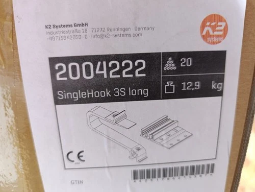 1 piece K2 2004222 roof hook single hook 3s long