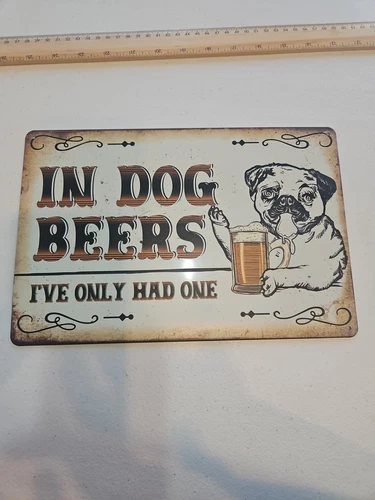 In Dog Beers, Ive Only Had One, Rustic-looking 8x12 Tin Sign, Humor