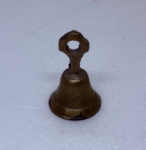 Vintage Solid Brass Tabletop Dinner Bell 2” Hand Carved Ornate Art Decor 18