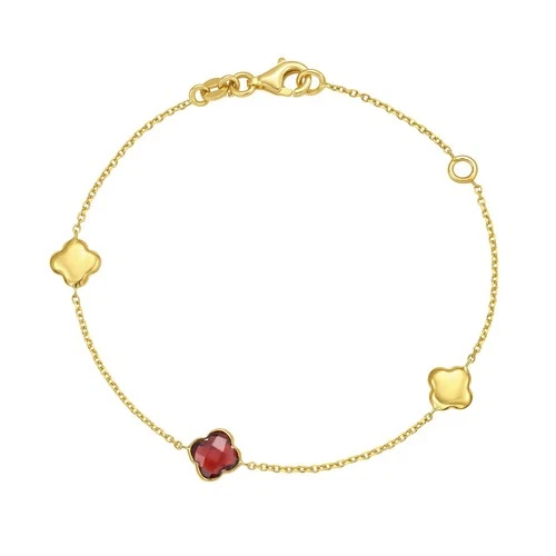 14k Yellow Gold 7.25" Garnet Clover Gemstone Solid Cable Chain Bracelet 2 Gr