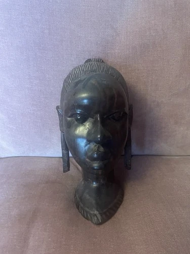 Vintage Hand Carved African Wooden Bust – Tribal Woman Sculpture Solid Hardwood