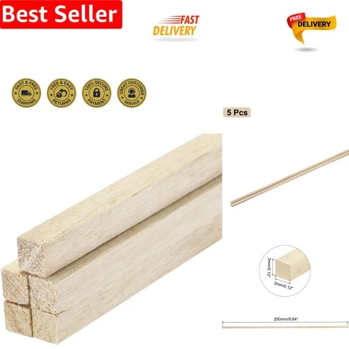 Pack of 5 Durable Hardwood Square Dowel Sticks - Perfect for All Crafting Needs