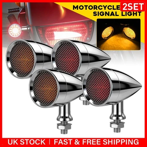 4PCS Black Motorcycle Bullet LED Turn Signal Light Amber Red Brake Blinker