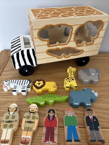 Melissa and Doug Safari Shape Sorter Bus Wooden Toy - 1 Animal Missing