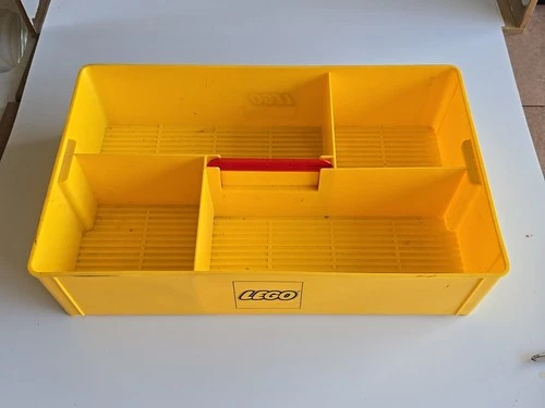 Vintage LEGO Plastic Storage Bin Sorter, Classic Yellow Tray With Red Handle.