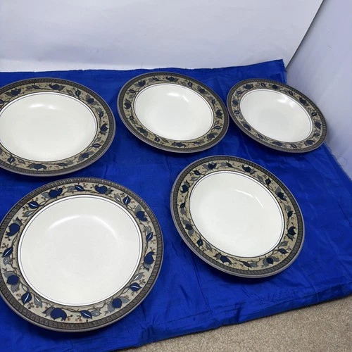 Lot of 5 Mikasa Intaglio Arabella 9 3/8" Rimmed Soup Pasta Bowls CAC 01 EUC