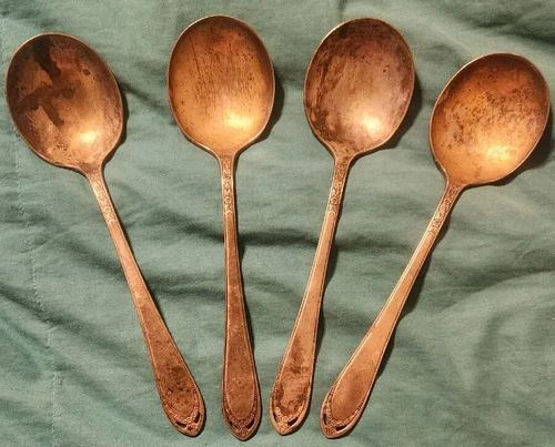 Vintage ROGERS BROS Silver Plate soup spoons Set Of 4 Tarnished Floral Patern