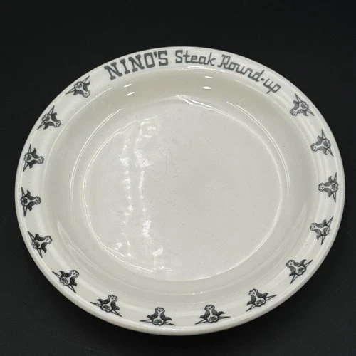 Vintage Nino's Steak Round-Up Restaurant Bread Soup Bowl Plate Buffalo China
