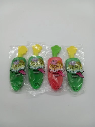 New Face Twisters Sour Tongue Slime Gel Candy 3 Green Apple 1 Strawberry Lot