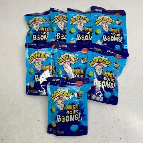 WARHEADS (7 PACK) Mega Sour Booms 4 Flavors Resealable Bags 5.5 Oz BB 08/26