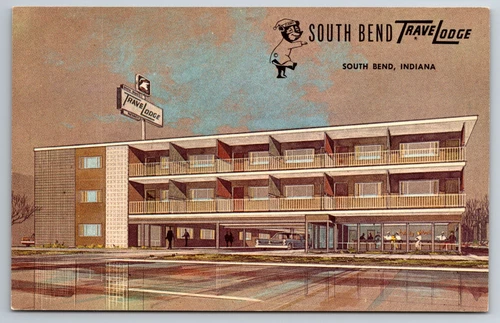 South Bend, IN, TraveLodge, Old Cars, Vintage Postcard