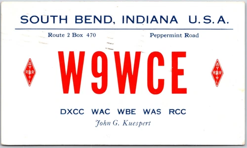 1949 QSL Radio Card W9WCE South Bend Indiana Amateur Radio Posted Postcard