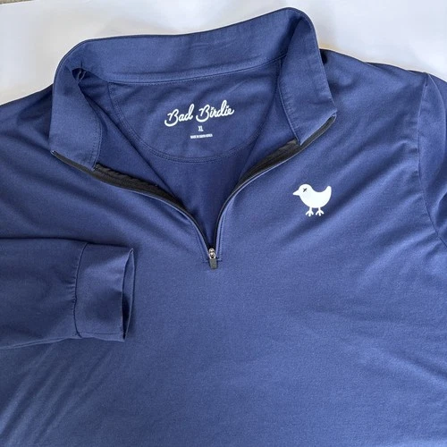Bad Birdie Men's XL Logo 1/4 Zip Navy Blue Stretch Golf Pullover Performance