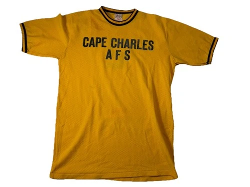Vtg 60s 70s Mesh Baseball Jersey Cape Charles AFS Yellow Nylon T Shirt