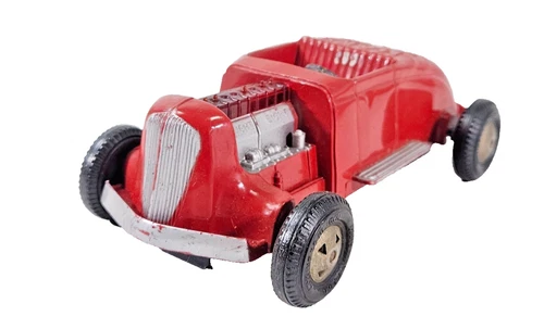 Marx #2 Ford Sparking Hot Rod Car Plastic Vintage 1950s Red Color Model Unboxed.