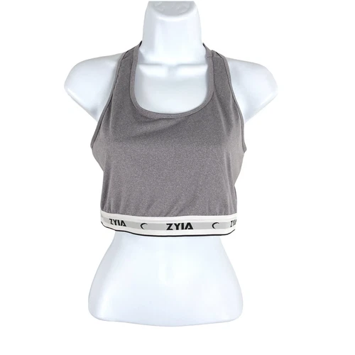 Zyia Active Sports Bra Small Racerback Gray Athletic Logo Spell Out TP-837