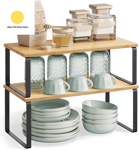 Spice Rack, Set of 2 Cupboard Shelf Organisers, Expandable Kitchen Shelf Organi