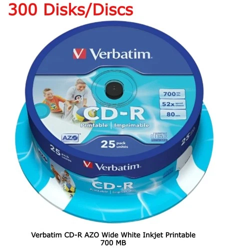 300 x Verbatim Blank CD-R 52x White CD Printable 700MB 80Mins Discs in Spindle