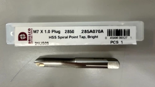 DRILLCO 285A070A 7.0mm-1.00mm Spiral Point Taps High Speed Steel Bright Plug