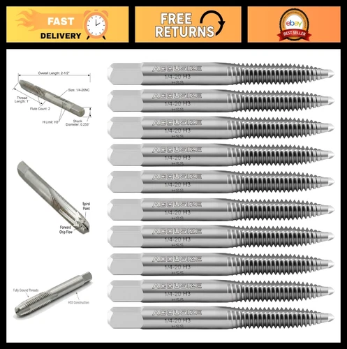 1/4-20NC HSS Spiral Point Taps, 2 Flute, 10 Pack, ANSI Standard, Precision Groun
