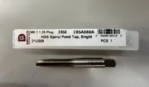 DRILLCO 285A080A 8.0mm-1.25mm Spiral Point Taps High Speed Steel Bright Plug