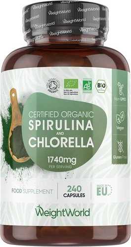 Spirulina & Chlorella Capsules 240 Organic Vegan Superfood 80 Day Supply