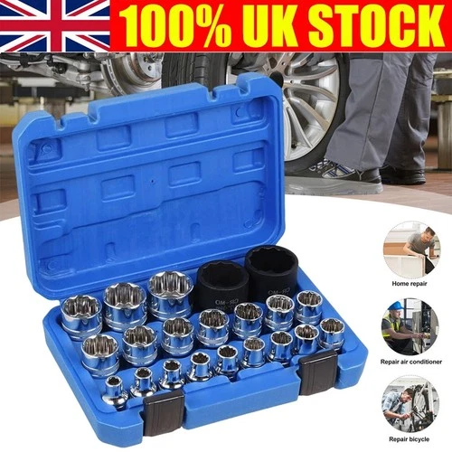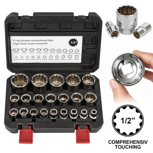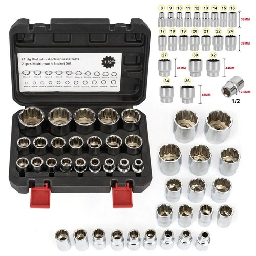 21X Multi Spline Socket Set 1/2'' 12 Point Gear Lock Socket Wrench Metric Steel