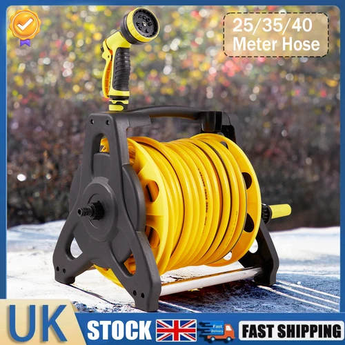 35M Free Standing Garden Hose Watering Pipe Reel With Spray Gun Nozzle Outdoor