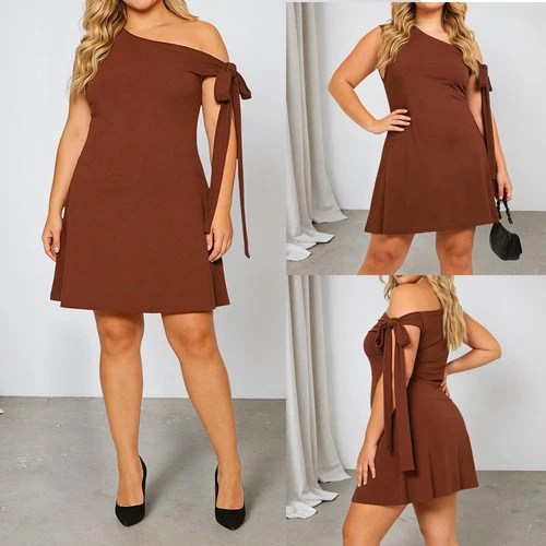 Plus Size Women One Shoulder Sexy Mini Dress Bowknot Tied Party Swing Sundress